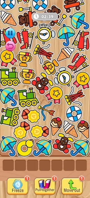 - Free (Freeze Time): Temporarily stops the falling items, providing players with valuable thinking time to better plan their eliminating strategy.